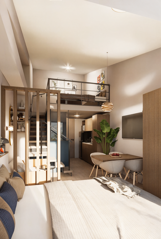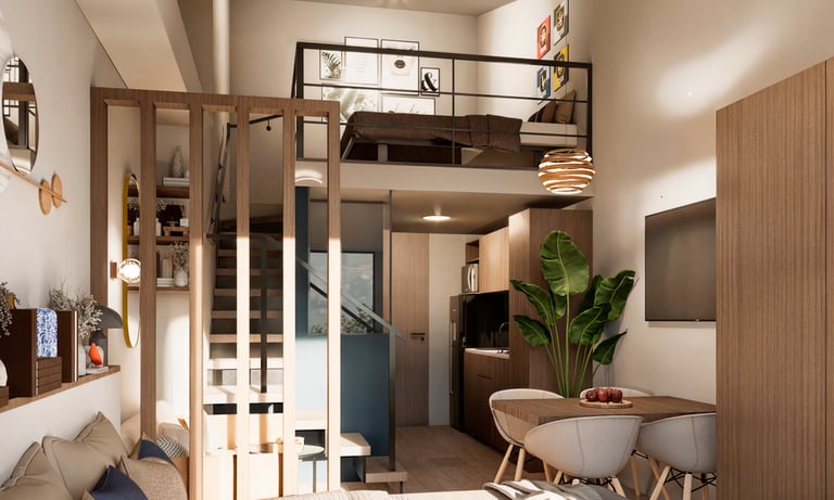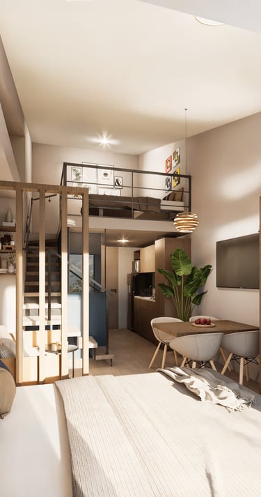 Haven Dual es un apartamento dúplex de 34 metros cuadrados que ofrece amplitud y comodidad en cada nivel. Diseñado con un estilo moderno y funcional, es perfecto para quienes buscan un espacio versátil y elegante. Sus áreas bien distribuidas permiten disfrutar de un hogar práctico y acogedor. Este modelo es ideal para adaptarse a diferentes estilos de vida y necesidades. Disponible a un precio de 1.850.000 COP, combina diseño y practicidad en un solo lugar.