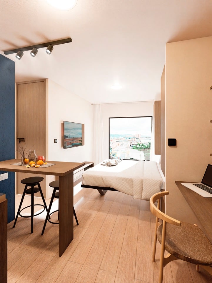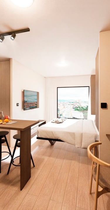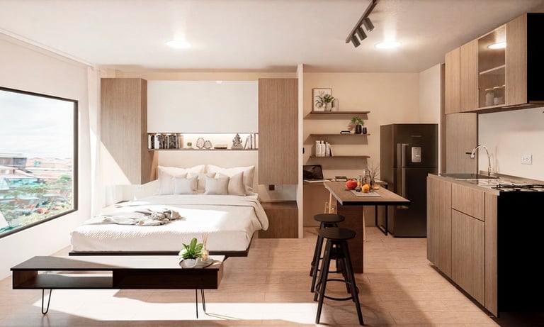 Urban Loft es un apartamento de 27 metros cuadrados diseñado para quienes buscan funcionalidad y estilo. Su distribución moderna aprovecha cada espacio, creando un ambiente práctico y acogedor. Perfecto para una vida urbana, combina diseño contemporáneo con comodidad. Este modelo es ideal para quienes valoran espacios bien pensados y con personalidad. Disponible a un precio de 1.600.000 COP, es una opción que equilibra estilo y practicidad.
